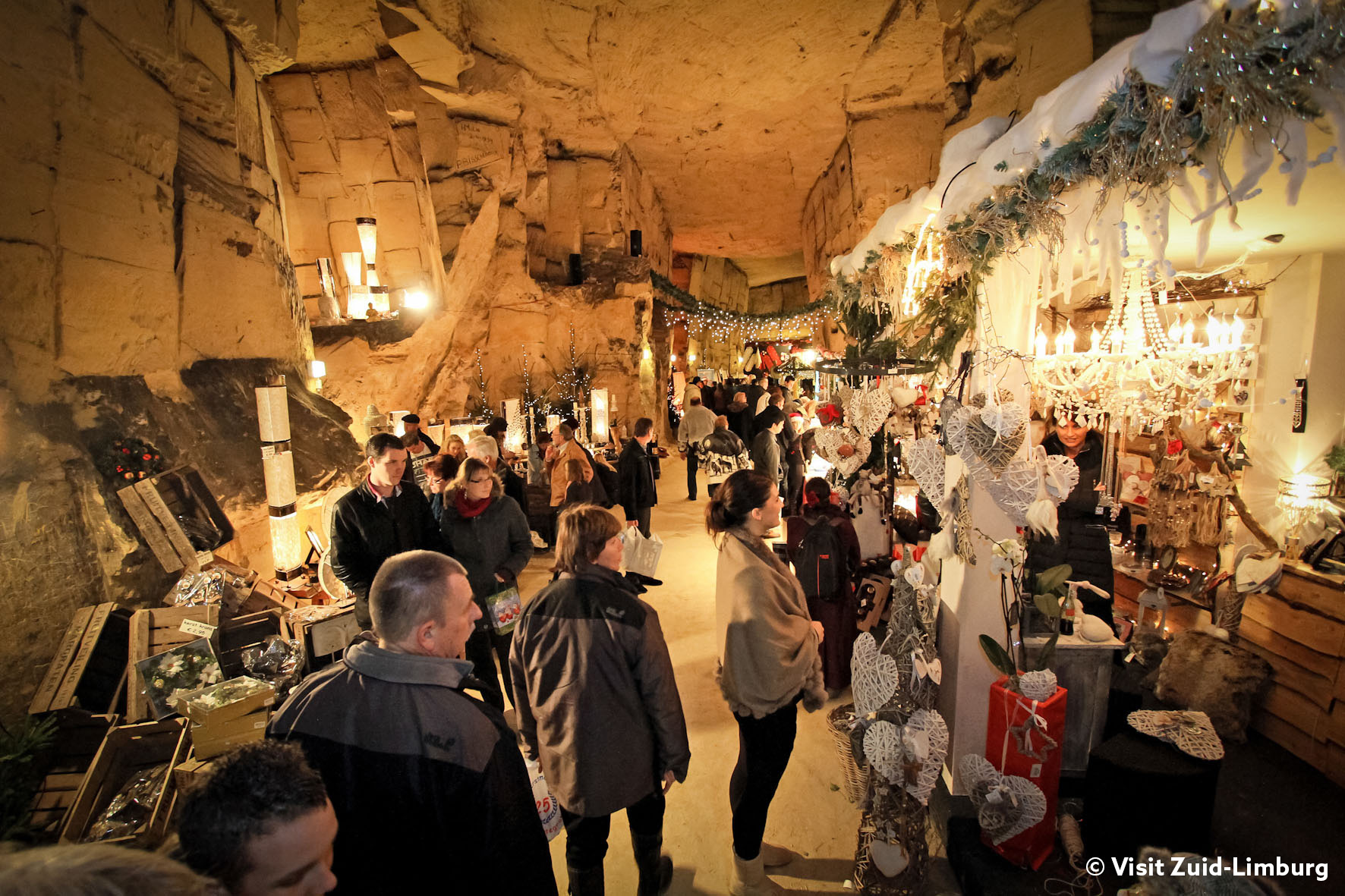 Voormiddag: na de diverse ophaalplaatsen rijden we naar Valkenburg. De kerstmarkt Valkenburg is een verzameling van grote, unieke kerstactiviteiten. Ondergebracht onder de verzamelnaam Kerststad Valkenburg. De Gemeentegrot, gelegen onderaan de Cauberg, is daarbij zeker een aanrader. Het is namelijk de grootste en oudste ondergrondse kerstmarkt van Europa. Dit betekent dat je ongeacht het weer kunt genieten van een heerlijke dag uit. Maar dat niet alleen. De grot voegt absoluut iets toe aan het unieke karakter van de kerstmarkt. De verlichting komt helemaal tot z’n recht. Een unieke kerstervaring.