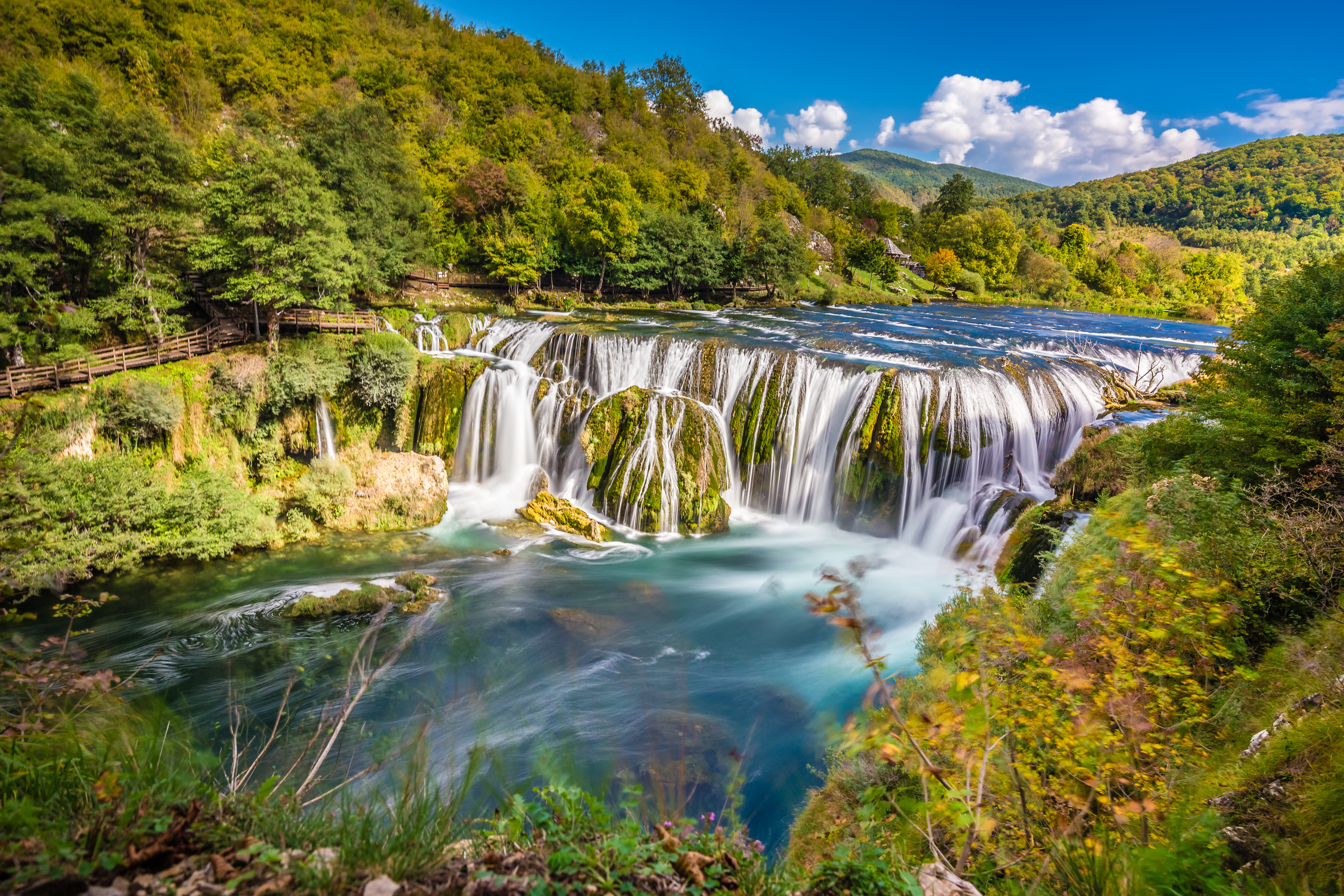 Na het ontbijt verkennen we het Nationaal Park Una, het grootste van de drie nationale parken van Bosnië. De Una staat sinds de Romeinen al bekend als mooiste rivier van Bosnië en dondert in alle glorie 25 m naar beneden ter hoogte van de imposante waterval ‘Štrbački buk’. Het turquoise water schuimt van de rotspartijen, de zachte nevel verfrist de huid en het getjirp van de krekels in de groene hellingen maken dit ansichtplaatje compleet. Omgeven door het alomtegenwoordige natuurschoon nuttigen we vervolgens ons middagmaal toepasselijk op een bootje. Het sfeervolle Bihać wordt door weelderig groen omringd. De stad werd in het midden van de 13e eeuw door de Hongaarse kroon uitgeroepen tot vrije stad en groeide uit tot een belangrijk bolwerk tegen de Ottomanen. ’s Avonds genieten we van een traditioneel Bosnisch avondmaal en de daarbij horende folkloreshow.