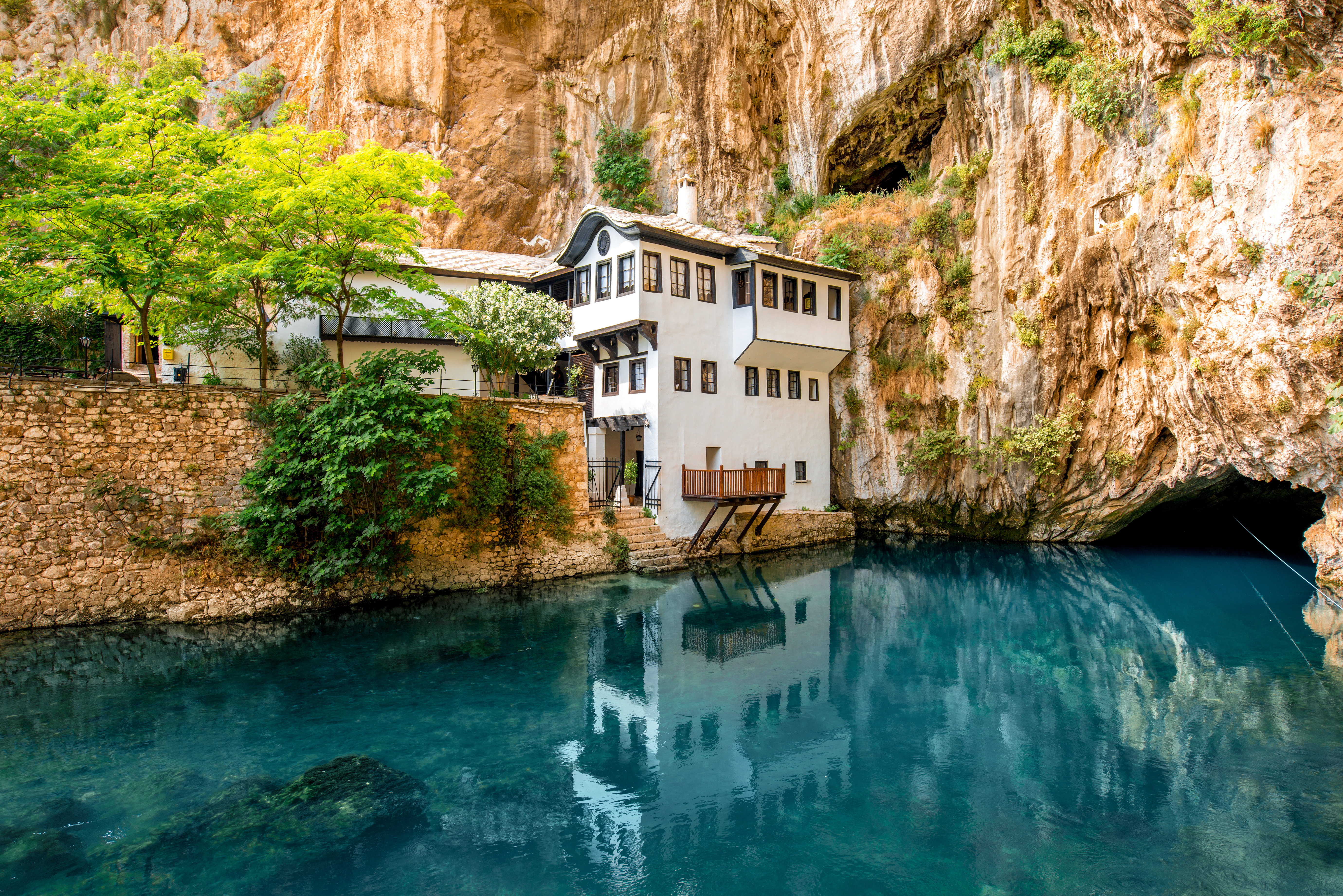 We beginnen de dag met wellicht één van de mooiste uitstapjes van onze reis, het Derwisjhuis in Blagaj, gebouwd in de 16e eeuw. Het is een prachtig voorbeeld van Ottomaanse architectuur en is één van de meest gefotografeerde plekken in heel Bosnië. Het witte kloostertje is gebouwd tegen een steile rotswand en weerspiegelt sierlijk in het azuurblauwe water van de Bruna-rivier. Het was toentertijd een oase van rust voor de derwisjen (facultatief ± € 6 pp). Als apotheose kuieren we doorheen de charmante kronkelstraatjes van Mostar, met de middeleeuwse huisjes. We vinden er een bonte mix van invloeden uit de Balkan en Turkije die deze stad zeer bijzonder maken. De blikvanger is de ‘Stari Most’, de sierlijke brug gebouwd door de Ottomanen in het midden van de 15e eeuw. Tegen de avond maken we ons klaar voor een exquis avondmaal op de Emporia Winery, waar we bij wijze van aperitief een introductie krijgen in de wijnproductie, met degustatie.