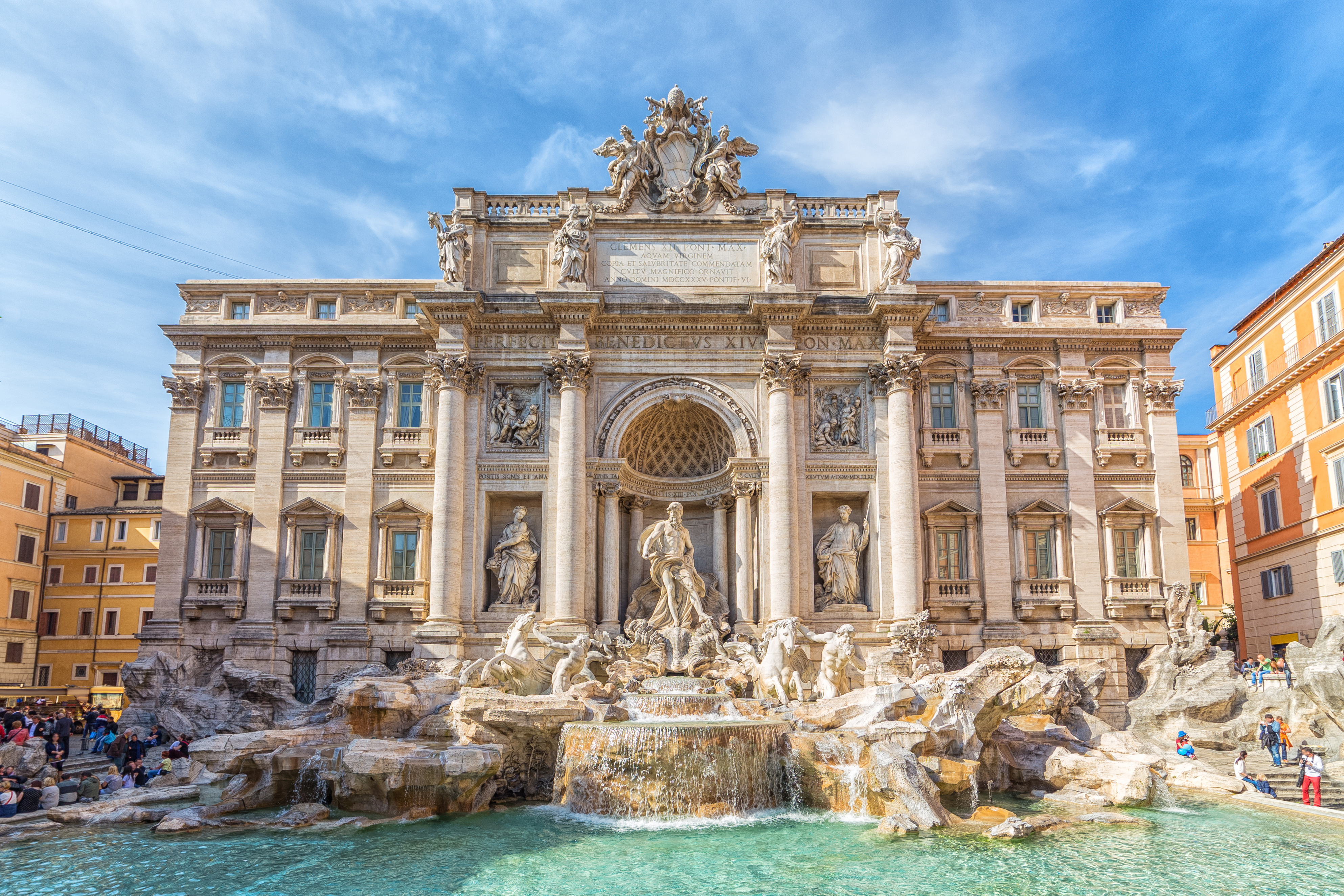 We nemen de MSC-bus naar het centrum van Rome tot de Piazza del Popolo. Vanaf daar neemt onze eigen gids ons mee op ontdekkingstocht. We starten in het Vaticaan op het Sint-Pietersplein met zijn overweldigende Sint-Pietersbasiliek (alleen buitenzijde). Vandaar trekken we naar bekende fonteinen op de gezellige Piazza Navona. Langs de senaat (Palazzo Madama) gaan we naar het prachtig bewaard gebleven Pantheon, met majestueuze koepel. Nadien genieten we op de Piazza Venezia van het zicht op het Forum Romanum en het Colosseum. We kuieren langs de Via del Corso (de grote winkelstraat) naar het parlement om nadien een muntje te gaan gooien in de beroemde Trevi-fontein. Via de Spaanse trappen keren we terug naar de Piazza del Popolo.