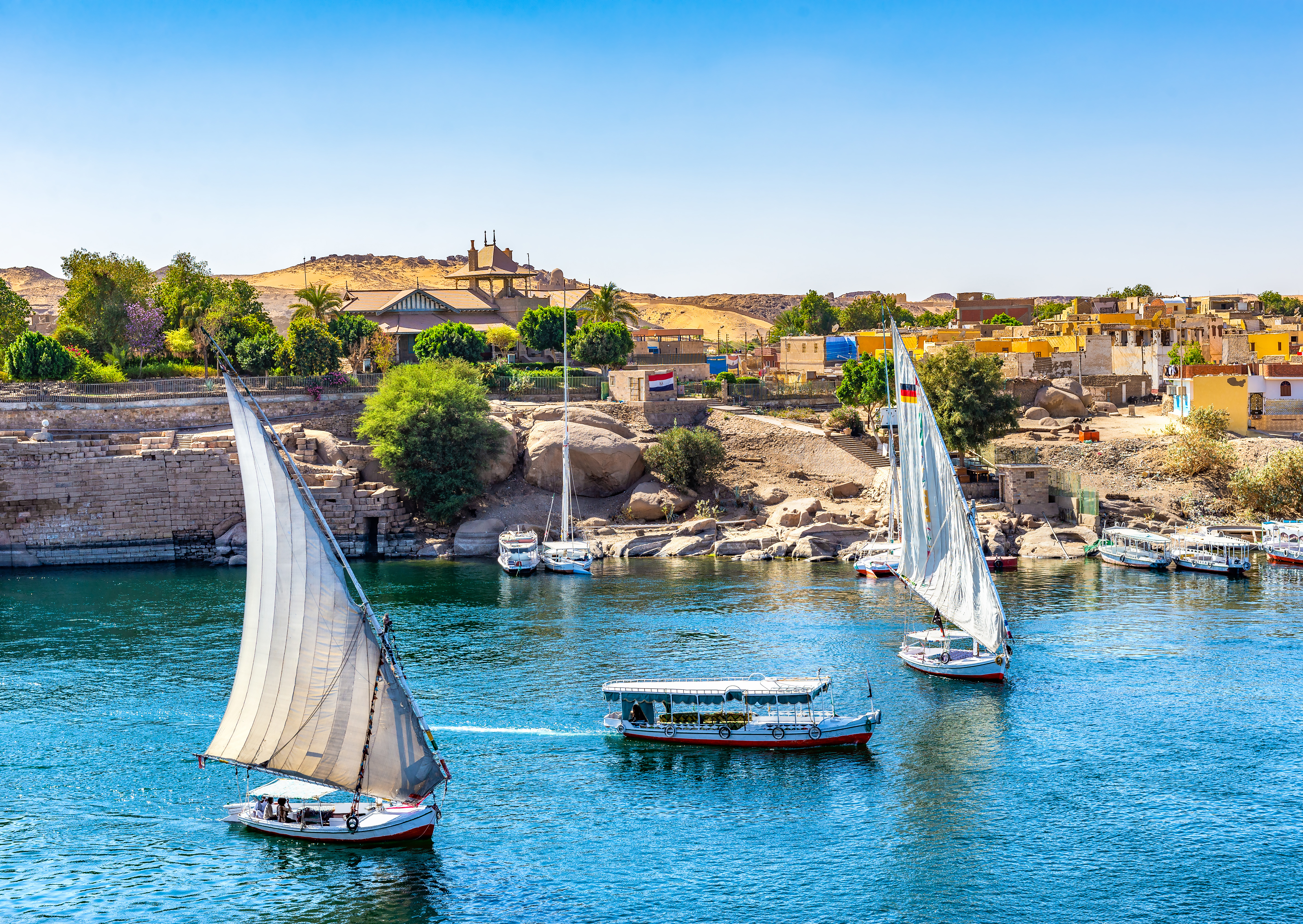 Binnenlandse vlucht met Egyptair naar Aswan en inscheping op uw 5* luxe cruiseschip MS Blue Shadow waarop u in vol pension zal verblijven en noordwaarts varen naar Luxor. Geniet van het zwembad en de andere faciliteiten op het schip van waaruit u dagelijks zeer interessante en leerrijke uitstappen zal doen. Eerst bezoekt u de Hoge Dam van Aswan dewelke Egypte voorziet van water en electriciteit. Het is een dam met rotsvulling aan de noordgrens tussen Egypte en Soedan. De dam wordt gevoed door de rivier de Nijl en het stuwmeer vormt het Nassermeer. Verder bezoek aan de tempel van Philae gewijd aan de vruchtbaarheidsgodin Isis. In de late namiddag een boottocht per felluca (zeilboot) rond het Olifanten-eiland met de zonsondergang als decor.