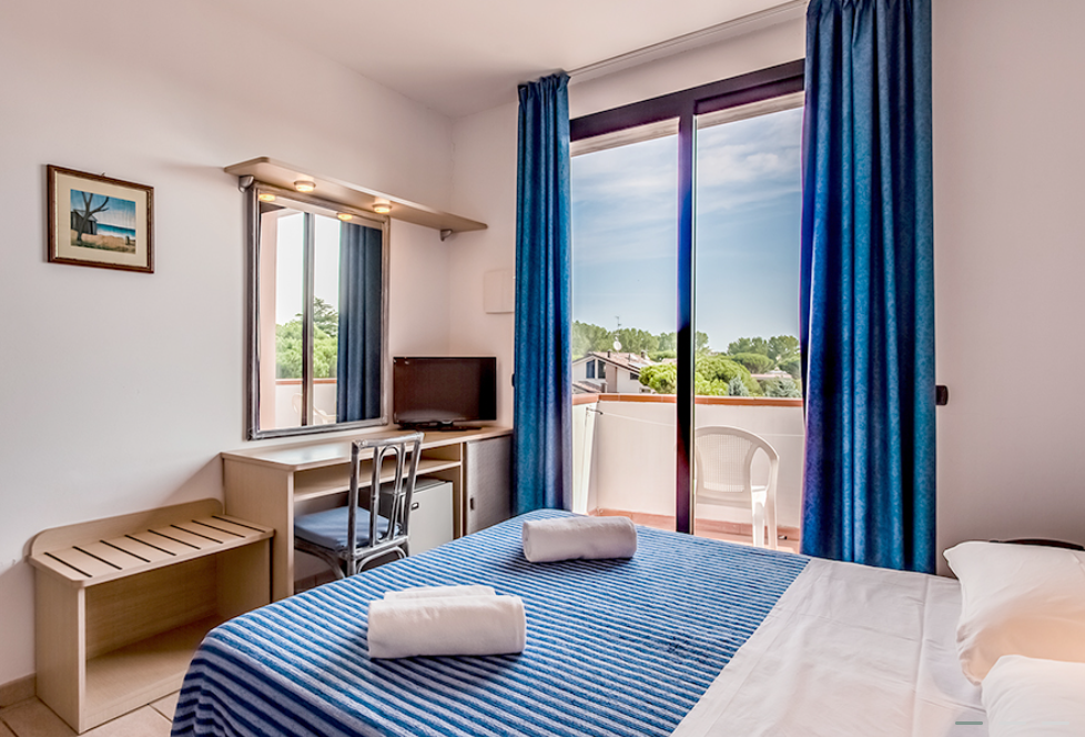 - Voorzieningen: gratis parking, groot buitenzwembad met zonneterras en gratis ligstoelen, lift, restaurant, bar, snackbar, tv-salon, gratis wifi.