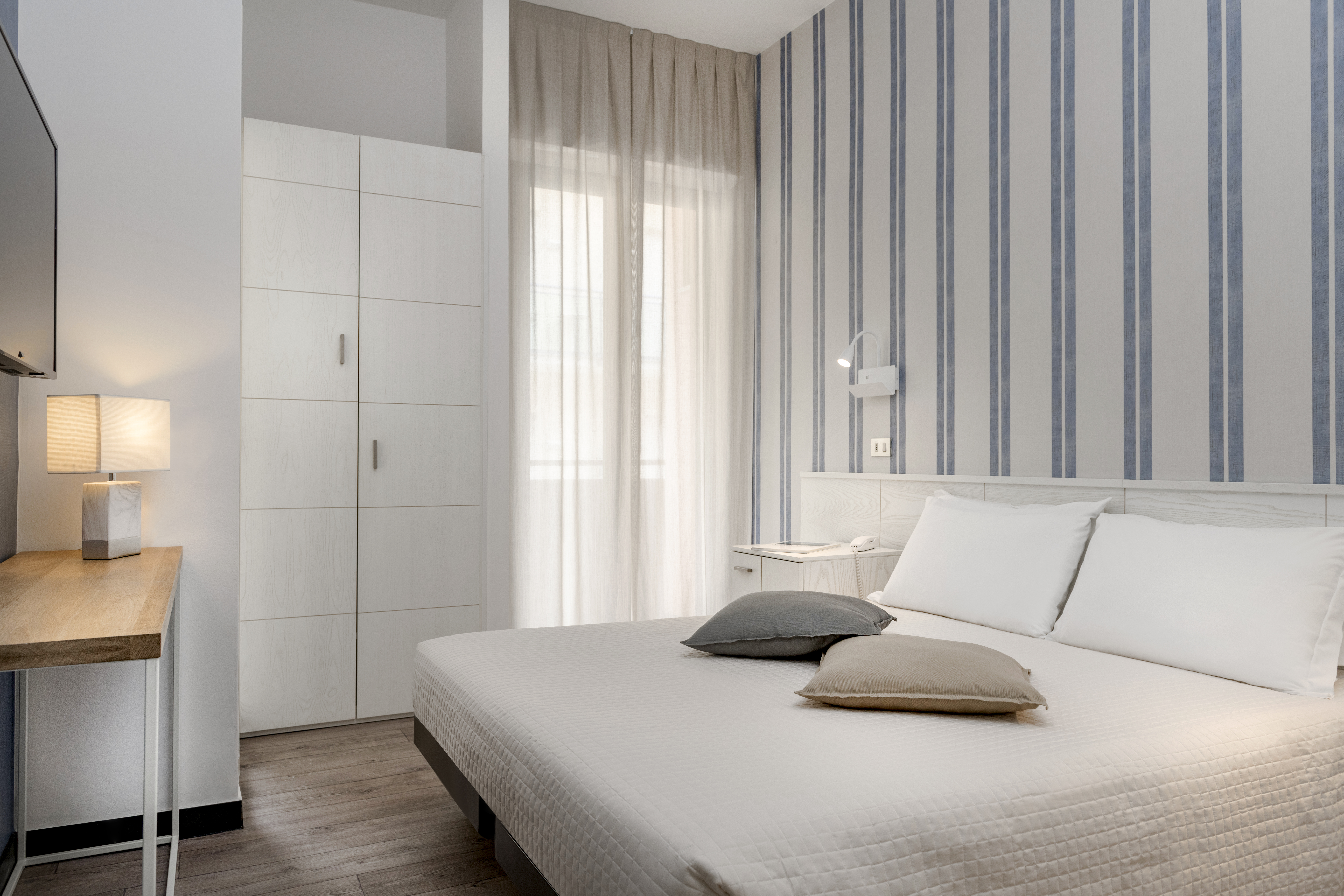 Kamers: zeer mooie kamers. De standaardkamers (1-3 pers.) zijn modern ingericht en beschikken over een badkamer met douche, toilet, haardroger, telefoon, airco, flatscreen tv, balkon, gratis kluis en ijskastje. De superieure kamers (1-2 pers.) hebben dezelfde faciliteiten maar beschikken over een regendouche, zijn groter en moderner.