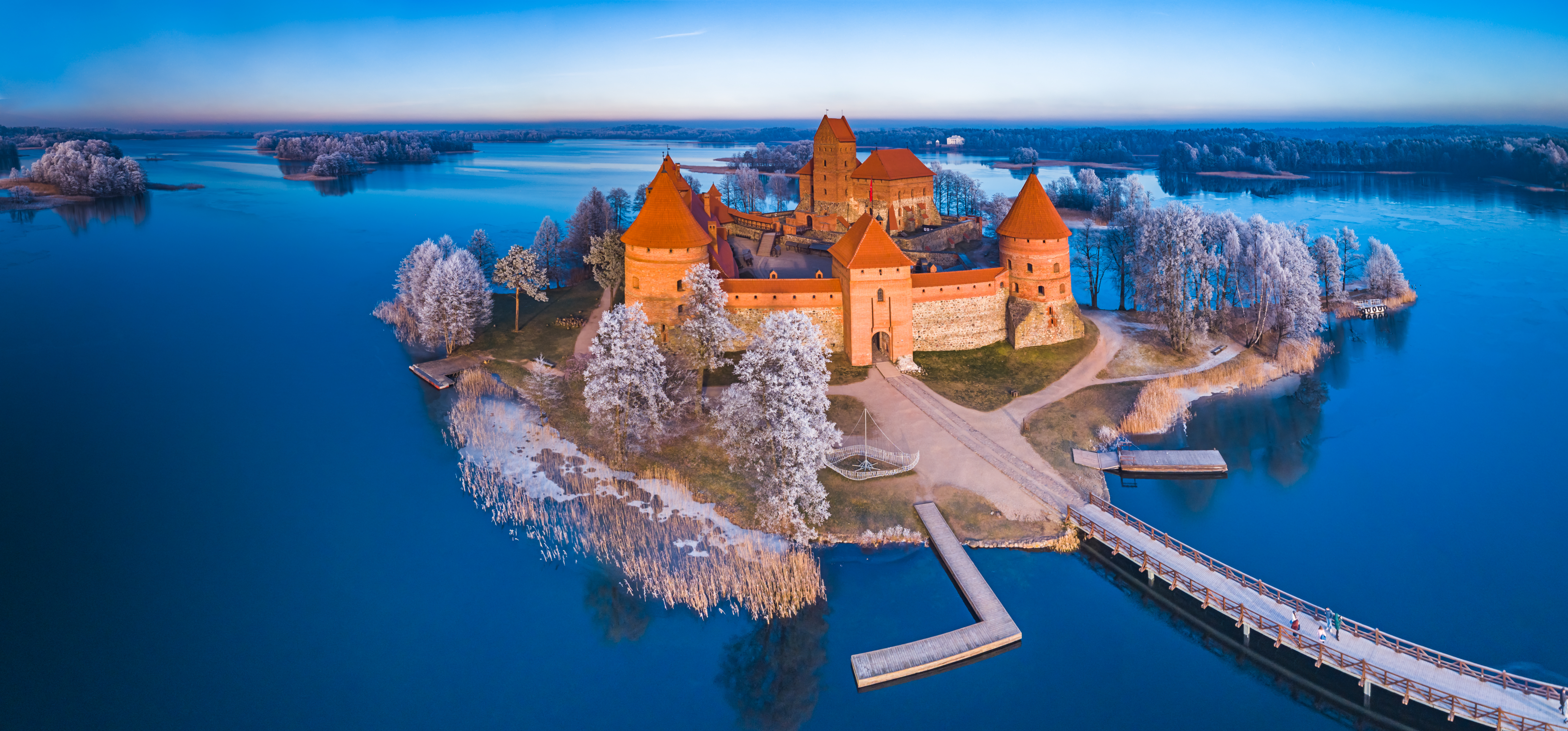 Het eilandkasteel van Trakai - doorheen de eeuwen de woonresidentie van de grootvorsten van Litouwen en de Poolse koningen – raakte mettertijd in verval en werd begin 20ste eeuw in ere hersteld in de 15e-eeuwse stijl. Het middeleeuws complex is één van de toeristische trekpleisters van Litouwen en huisvest een boeiend historisch museum. In de nabijheid van het kasteel leven nog steeds een aantal leden van de Karaim die ooit door de grootvorst werden belast met o.a. het huishouden van het kasteel. De kleurige houten huisjes in de hoofdstraat van Trakai getuigen van hun rijke verleden en hun joods geloof. Zo bestaat een venster uit drie delen, een voor god, een voor de gastheer en een voor de gasten. Na ons bezoek aan het Karaim district voorzien we opnieuw vrije tijd in Vilnius. Zo kunnen de liefhebbers wat rondstruinen in de hippe wijk Užupis, een bezoekje brengen aan het Ambermuseum of een unieke ballonvaart beleven boven de Letse hoofdstad, badend in een knisperende kerstsfeer.